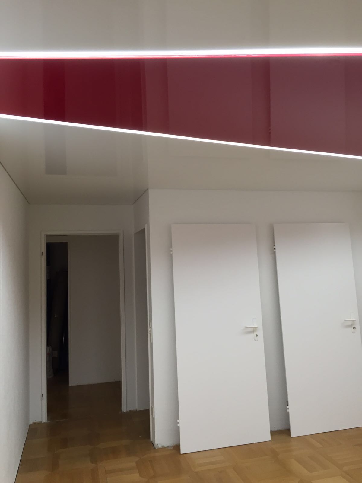 Glänzende Spanndecken erzielen einen besonderen Effekt und vergrössern optisch jeden Raum, zudem ist es eine günstige und unkomplizierte Art Decken optisch aufzufrischen.